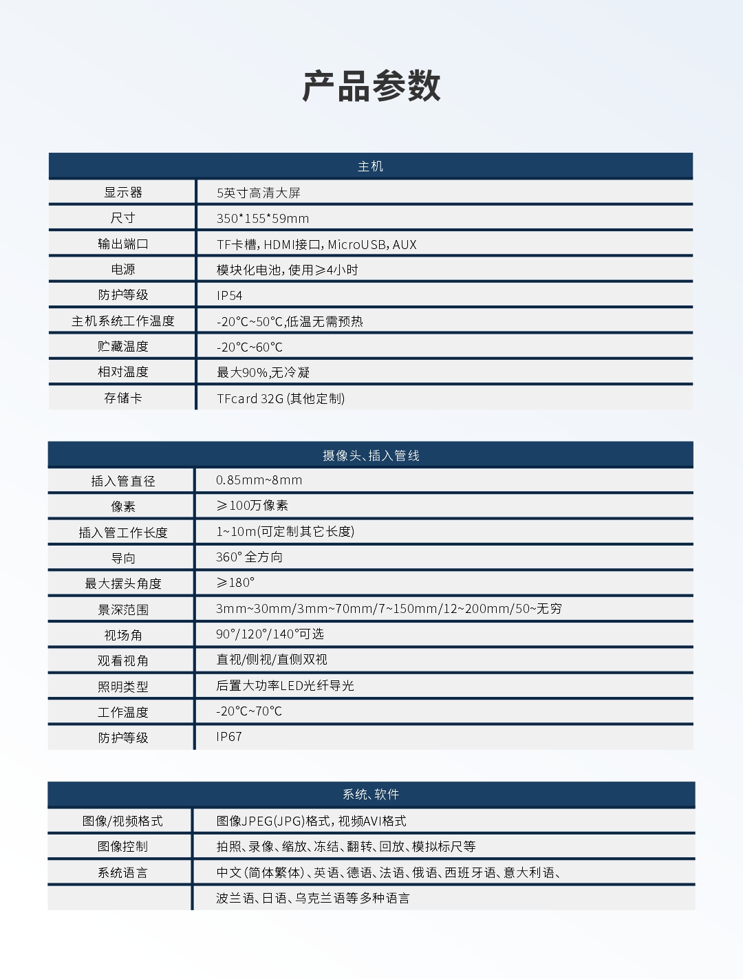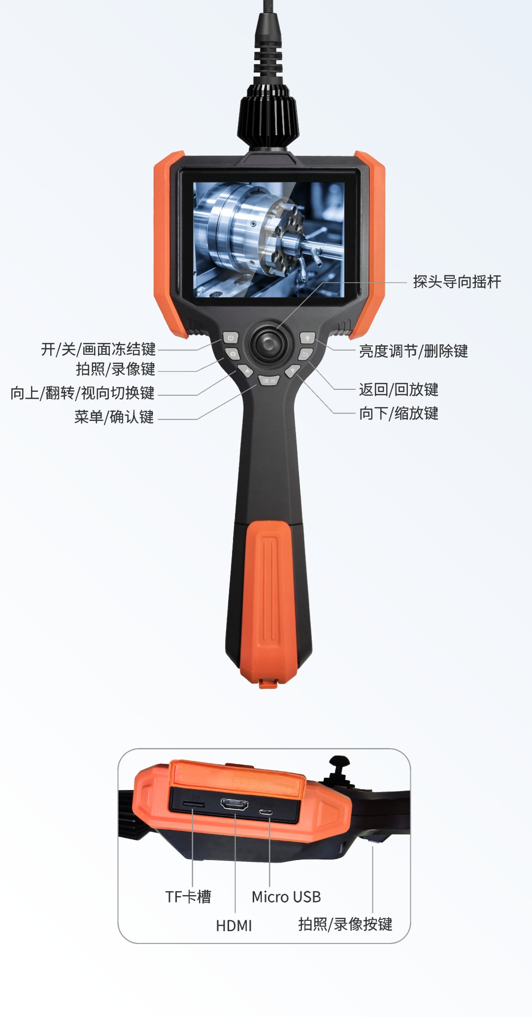 優(yōu)勢特點:快速更換管線、百萬像素、360°旋轉(zhuǎn)探頭、光纖照明