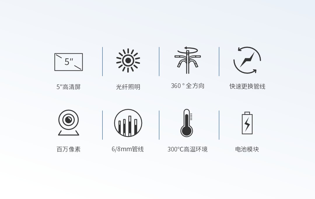 優(yōu)勢特點:300℃耐高溫;百萬高清像素;后置光纖導(dǎo)光;